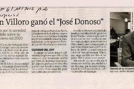 Mexicano Juan Villoro ganó el "José Donoso" [artículo] El Sur (Diario : Concepción, Chile)-- nov. 06, 2012, p. 2 .