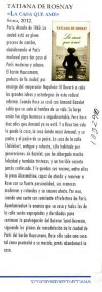 Materias: Rosnay, Tatiana de - Autoras francesas - La casa que amé