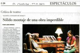 Sólido montaje de una obra imperdible [artículo] Pedro Labra Herrera El Mercurio (Diario : Santiago, Chile)-- nov. 04, 2012, p. C24 .