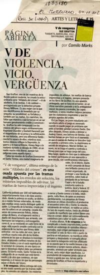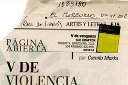 V DE violencia, vicio, vergüenza [artículo] Camilo Marks El Mercurio (Diario : Santiago, Chile)-- nov. 04, 2012, p. E15 (Revista de Libros) .