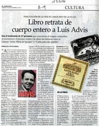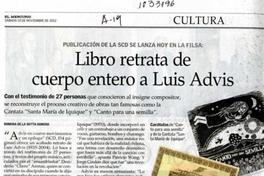 Libro retrata de cuerpo entero a Luis Advis [artículo] Romina De La Sotta Donoso El Mercurio (Diario : Santiago, Chile)-- nov. 11, 2012, p. A19 .