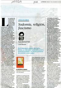 Sodomía, religión, fascismo [artículo] Juan Manuel Vial La Tercera (Diario : Santiago, Chile)-- nov. 3, 2012, p. 82 .
