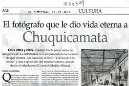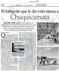 El fotógrafo que le dio vida eterna a Chuquicamata [artículo] Daniela Silva Astorga El Mercurio (Diario : Santiago, Chile)-- nov. 12, 2012, p. A12 .