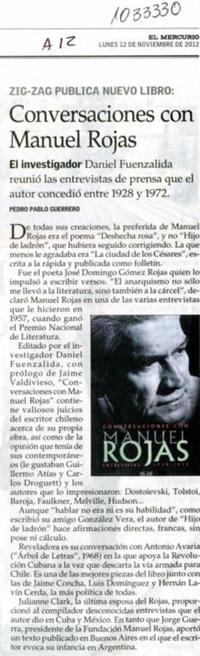 Conversaciones con Manuel Rojas [artículo] Pedro Pablo Guerrero El Mercurio (Diario : Santiago, Chile)-- nov. 12, 2012, p. A12 .