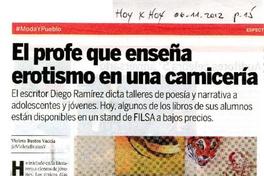 El profe que enseña erotismo en una carnicería [artículo] Violeta Bustos Vaccia Hoy X Hoy (Diario : Santiago, Chile)-- nov. 11, 2012, p. 15 .