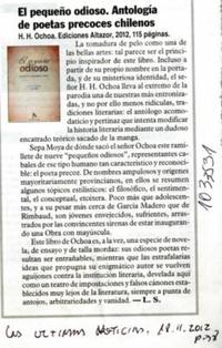 El pequeño odioso. Antología de poetas precoses chilenos [artículo]/ Leonardo Sanhueza Las Últimas Noticias (Diario : Santiago, Chile)-- nov. 17, 2012, p. 38 .
