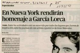 En Nueva York rendirán homenaje a García Lorca [artículo]/ El Mercurio (Diario : Calama, Chile)-- jun. 3, 2012, p. 25 .