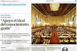 Apoyo al ideal del conocimiento gratis [artículo]/ Pablo Marín La Tercera (Diario : Santiago, Chile)-- nov. 18, 2012, p. 79 .