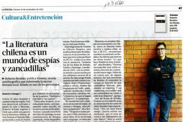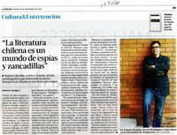 La literatura chilena es un mundo de espías y zancadillas [artículo]/ Roberto Careaga C. La Tercera (Diario : Santiago, Chile)-- nov. 16, 2012, p. 67 .