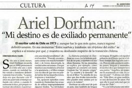 Ariel Dorfman: "Mi destino es de exiliado permanente" [artículo]/ Constanza Rojas Valdés El Mercurio (Diario : Santiago, Chile)-- dic. 14, 2012, p. A14 .