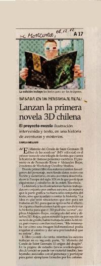 Lanzan la primera novela 3D chilena [artículo]/ Camila Mellado El Mercurio (Diario : Santiago, Chile)-- dic. 8, 2012, p. A 17 .