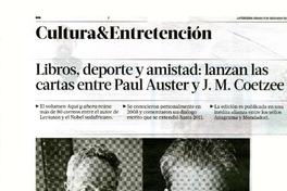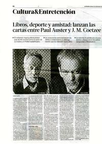 Libros, deporte y amistad: lanzan las cartas entre Paul Auster y J. M. Coetzee [artículo]/ Javier García La Tercera (Diario : Santiago, Chile)-- dic. 8, 2012, p. 86 .