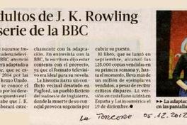 Novela para adultos de J. K. Rowling será una minioserie de la BBC [artículo]/ La Tercera (Diario : Santiago, Chile)-- dic. 5, 2012, p. 46 .