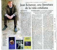 Jean Echenoz, una literatura de la vida cotidiana [artículo]/ Marilú Ortiz de Rozas El Mercurio (Diario : Santiago, Chile)-- dic. 1, 2012, p. A16 .
