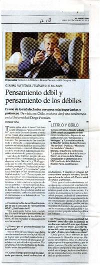 Pensamiento débil y pensamiento de los débiles [artículo] Patricio Tapia
