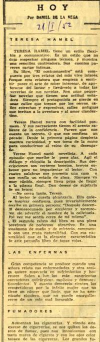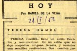 Teresa Hamel [artículo] / Las Últimas Noticias (Diario : Santiago, Chile)-- ene. 21, 1952, p. 4 .