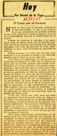 El cauce que no encausa [artículo] / Daniel de la Vega Las Últimas Noticias (Diario : Santiago, Chile)-- may. 31, 1955, p. 4. .