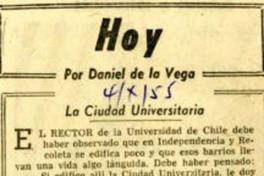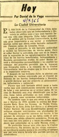 La ciudad universitaria [artículo] / Daniel de la Vega Las Últimas Noticias (Diario : Santiago, Chile)-- oct. 4, 1955, p. 4. .