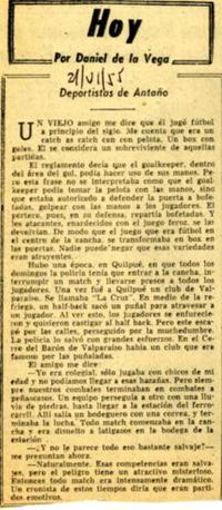 Deportistas de antaño [artículo] / Daniel de la Vega Las Últimas Noticias (Diario : Santiago, Chile)-- jun. 21, 1955, p. 4. .