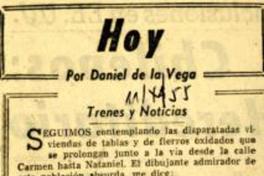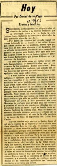 Trenes y noticias [artículo] / Daniel de la Vega Las Últimas Noticias (Diario : Santiago, Chile)-- oct. 11, 1955, p. 4. .