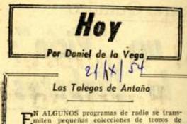 Las talegas de antaño [artículo] / Daniel de la Vega Las Últimas Noticias (Diario : Santiago, Chile)-- sep. 21, 1954, p. 4. .