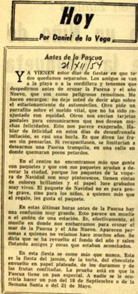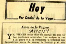 Antes de la pascua [artículo] / Daniel de la Vega Las Últimas Noticias (Diario : Santiago, Chile)-- dic. 21, 1954, p. 4. .
