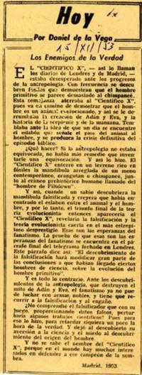 Los enemigos de la verdad [artículo] / Daniel de la Vega Las Últimas Noticias (Diario : Santiago, Chile)-- dic. 15, 1953, p. 4 .