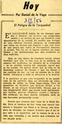 El peligro de la terquedad [artículo] / Daniel de la Vega Las Últimas Noticias (Diario : Santiago, Chile)-- ene. 3, 1956, p. 4 .