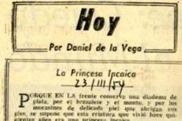 La princesa incaica [artículo] / Daniel de la Vega Las Últimas Noticias (Diario : Santiago, Chile)-- mar. 23, 1954, p. 4. .