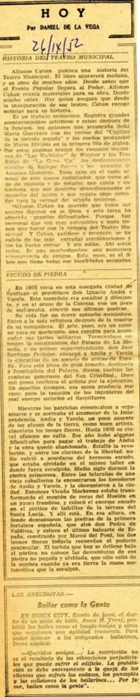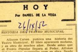 Historia del Teatro Municipal [artículo] / Daniel de la Vega Las Últimas Noticias (Diario : Santiago, Chile)-- nov. 26, 1952, p. . .