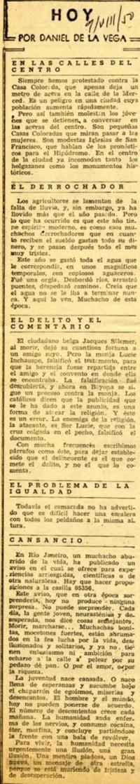 En las calles del centro [artículo] / Daniel de la Vega Las Últimas Noticias (Diario : Santiago, Chile)-- ago. 9, 1950, p. 4 .