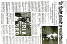 Juan Villoro:"Sin historias, el mundo se volvería intolerable" [artículo] / Jorge Abasolo Aravena El Labrador (Diario : Melipilla, Chile)-- nov. 25, 2012, p. 17-18 .