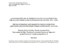 La Generación del 50: momento clave en la literatura chilena (en torno a dos antologías de cuento: 1954-1959) [artículo] / Eduardo Godoy Gallardo y Haydée Ahumada Peña Anales de Literatura Chilena (Revista : Santiago, Chile)-- Año 13, no.18 (dic. 2012), p. 103-116 .