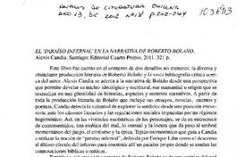 El 'Paraíso Infernal' en la narrativa de Roberto Bolaño [artículo] / Lucia Guerra Cunningham Anales de Literatura Chilena (Revista : Santiago, Chile)-- Año 13, no.18 (dic. 2012), p. 242-244 .