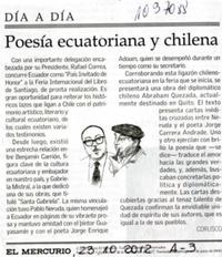 Poesía ecuatoriana y chilena [artículo] / Corusco El Mercurio (Diario : Santiago, Chile)-- oct. 23, 2012, p. A3 .