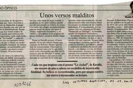 Unos versos malditos [artículo] / Vicente Montañes Las Últimas Noticias (Diario : Santiago, Chile)-- dic. 2, 2012, p. 37 .