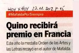 Quino recibirá premio en francia [artículo]