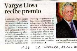 Vargas Llosa recibe premio [artículo] / La Tercera (Diario : Santiago, Chile)-- nov. 23, 2012, p. 66 .