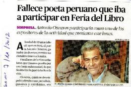 Fallece poeta peruano que iba a participar en Feria del Libro [artículo]