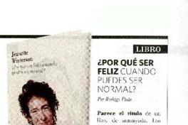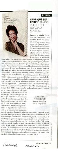 ¿Por qué ser feliz cuando puedes ser normal? [artículo] / Rodrigo Pinto El Mercurio (Diario : Santiago, Chile)-- ene. 13, 2013, p. 33 (Sábado) .