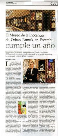 El museo de la Inocencia de Orhan Pamuk en Estambul cumple un año [artículo] / Marilú Ortiz de Rozas El Mercurio (Diario : Santiago, Chile)-- may. 13, 2013, p. A9 .