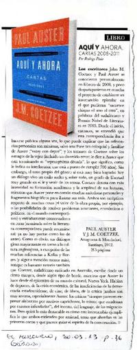 Aquí y ahora. Cartas 2008-2011 [artículo] / Rodrigo Pinto El Mercurio (Diario : Santiago, Chile)-- mar. 30, 2013, p. 36 (Sábado) .