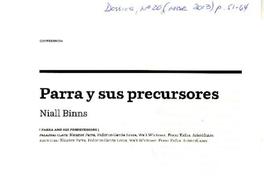 Parra y sus precursores [artículo] / Niall Binns Dossier (Revista : Santiago, Chile)-- n° 20 (marzo 2013), p. 51-64 .