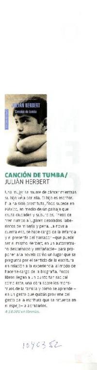 Materias: Autores mexicanos - Canción de Tumba - Herbert, Julián