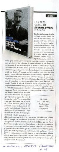 Las tres vidas de Stefan Zweig [artículo] / Rodrigo Pinto El Mercurio (Diario : Santiago, Chile)-- abr. 27, 2013, p. 36 (Sábado) .