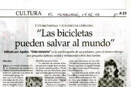 Tito Matamala y sus nuevas crónicas: "Las bicicletas pueden salvar al mundo" [artículo] / Iñigo Díaz El Mercurio (Diario : Santiago, Chile)-- may. 11, 2013, p. A23 .