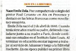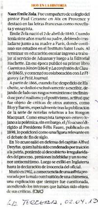 Nace Emile Zola [artículo] / CMC La Tercera (Diario : Santiago, Chile)- abr. 2, 2013, p. 41 .