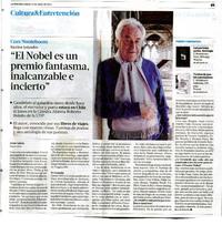 "El Nobel es un premio fantasma, inalcanzable e incierto" [artículo] / Javier García La Tercera (Diario : Santiago, Chile)-- may. 11, 2013, p. 89 .