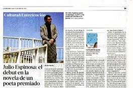 Julio Espinosa: el debut en la novela de un poeta premiado [artículo] / Javier García La Tercera (Diario : Santiago, Chile)-- abr. 15, 2013, p. 51 .