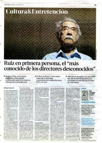 Ruiz en primera persona, el "más conocido de los directores desconocidos" [artículo] / Rodrigo González M. La Tercera (Diario : Santiago, Chile)-- abr. 14, 2013, p. 71 .